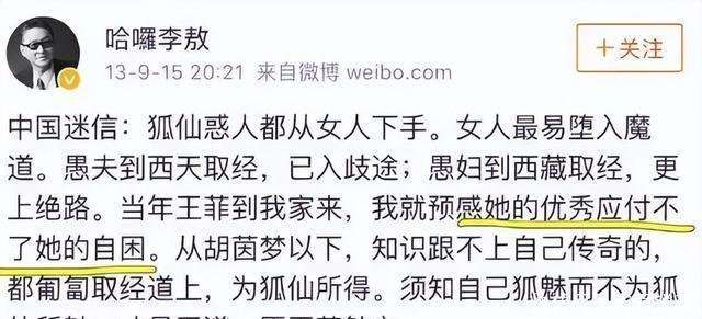 李敖评价王菲的时候就说过,王菲虽然是传奇,但是肚子里面却没有墨水,自身的知识跟不上自己的成就,这就导致了自己经常处在自证的漩涡之中,本质上就是一个“愚妇”。
